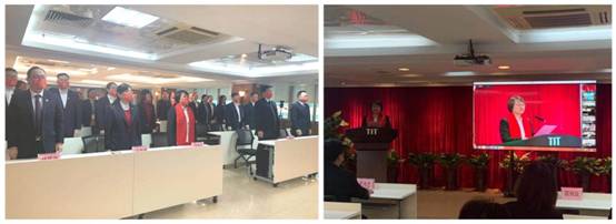 公司升國(guó)旗儀式現(xiàn)場(chǎng),全體員工起立奏唱國(guó)歌         簡(jiǎn)瑋儀致辭并作開(kāi)工動(dòng)員