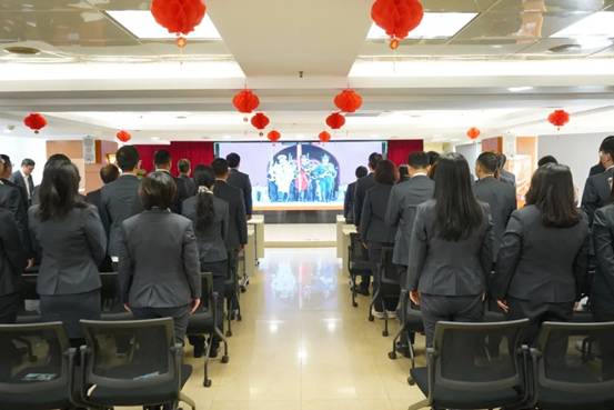 上午9點,公司在廣德大廈15樓禮堂舉行了升國旗儀式,全體員工參與。簡瑋儀代表領(lǐng)導(dǎo)班子在儀式上致辭。她指出,2025年是“十四五”收官之年,公司在2025年開局就實現(xiàn)了開門紅,希望大家在新的一年繼續(xù)堅定信心,開拓進取,全力沖刺“十四五”目標(biāo),為“十五五”開局起步奠定堅實基礎(chǔ),為強國建設(shè)、中華民族偉大復(fù)興作出紡織人新的更大貢獻。