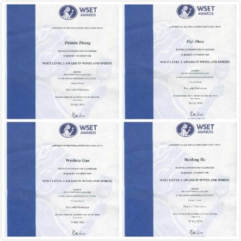團(tuán)隊(duì)成員全部通過(guò)WSET專業(yè)二級(jí)品酒師