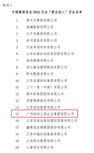 喜報(bào):紡織公司連續(xù)多年榮登“中國(guó)服裝行業(yè)百?gòu)?qiáng)企業(yè)”榜單
